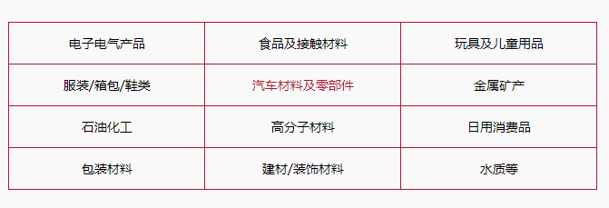 檢測(cè)領(lǐng)域:電子電氣產(chǎn)品、玩具、紡織品、家具、汽車及零部件等向歐盟出口的產(chǎn)品。