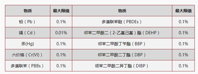 限用物質(zhì)及其限量要求